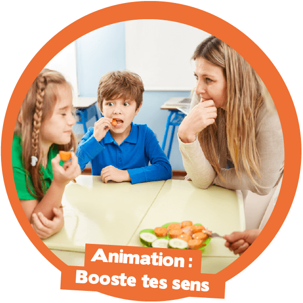 L’animation « Booste tes sens » vise à intégrer l’éducation alimentaire et sensorielle, en utilisant les principes de l’éducation au goût, en complémentarité de l’éducation nutritionnelle et des approches plus théoriques de l’équilibre alimentaire.