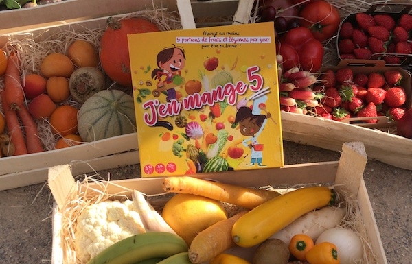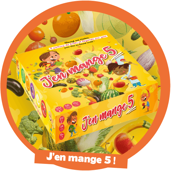 Le jeu “j’en mange 5” fait découvrir la diversité des fruits et légumes aux enfants et permet d’enrichir leurs connaissances concernant le répertoire lexical des fruits et légumes, d’apprendre à les connaître ; il permet de travailler l’exposition à ce groupe alimentaire.